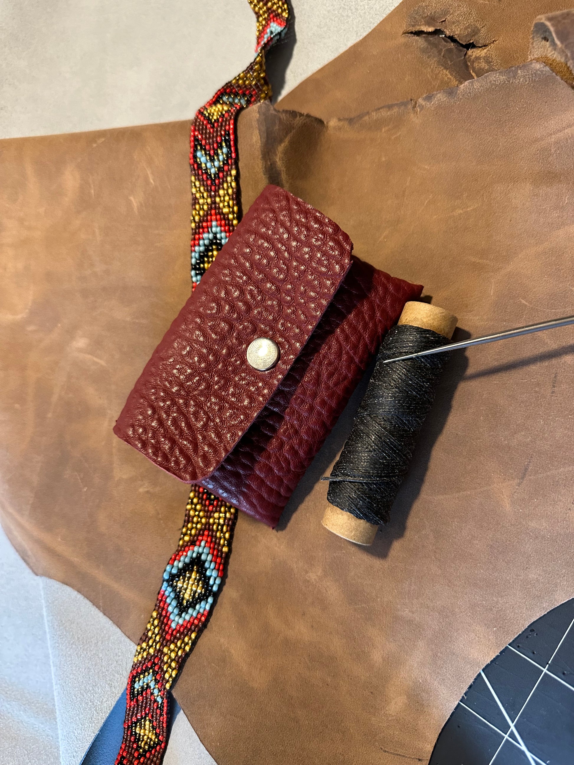 Each coin purse is made of full grain leather. Currently I have it in Burgandy Ostrich Embossed Leather as well as a beautiful Italian pink but I will be adding other colors in the future so please check back often.