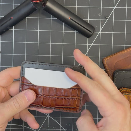 Using only the finest full-grain leather, each card holder is meticulously handmade in the USA. The rich, supple leather not only promises durability but also ages gracefully, developing a unique patina over time that tells the story of its journey with you.